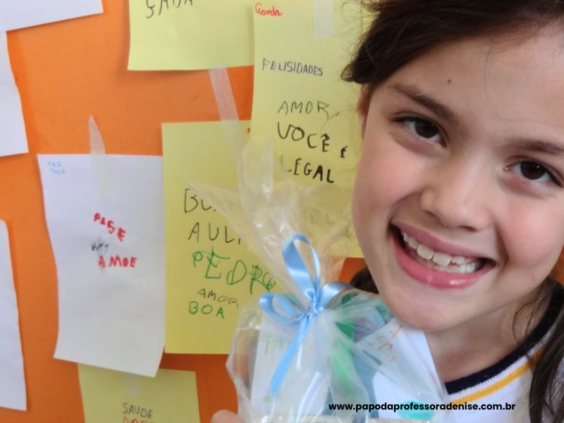 - Depois de algumas vezes, o professor para a brincadeira e pede que os alunos retirem o papel das costas e leiam o que os colegas escreveram sobre ele.