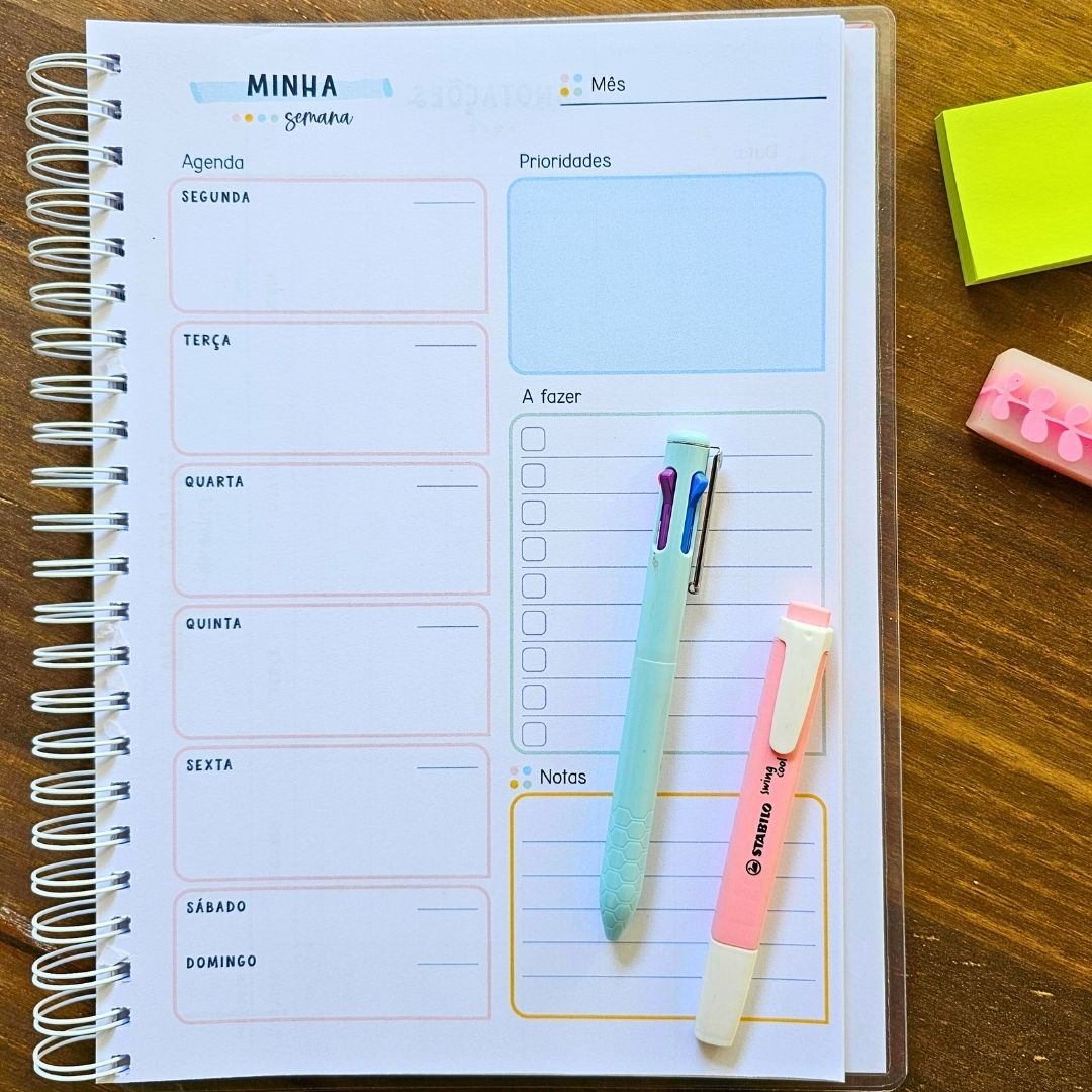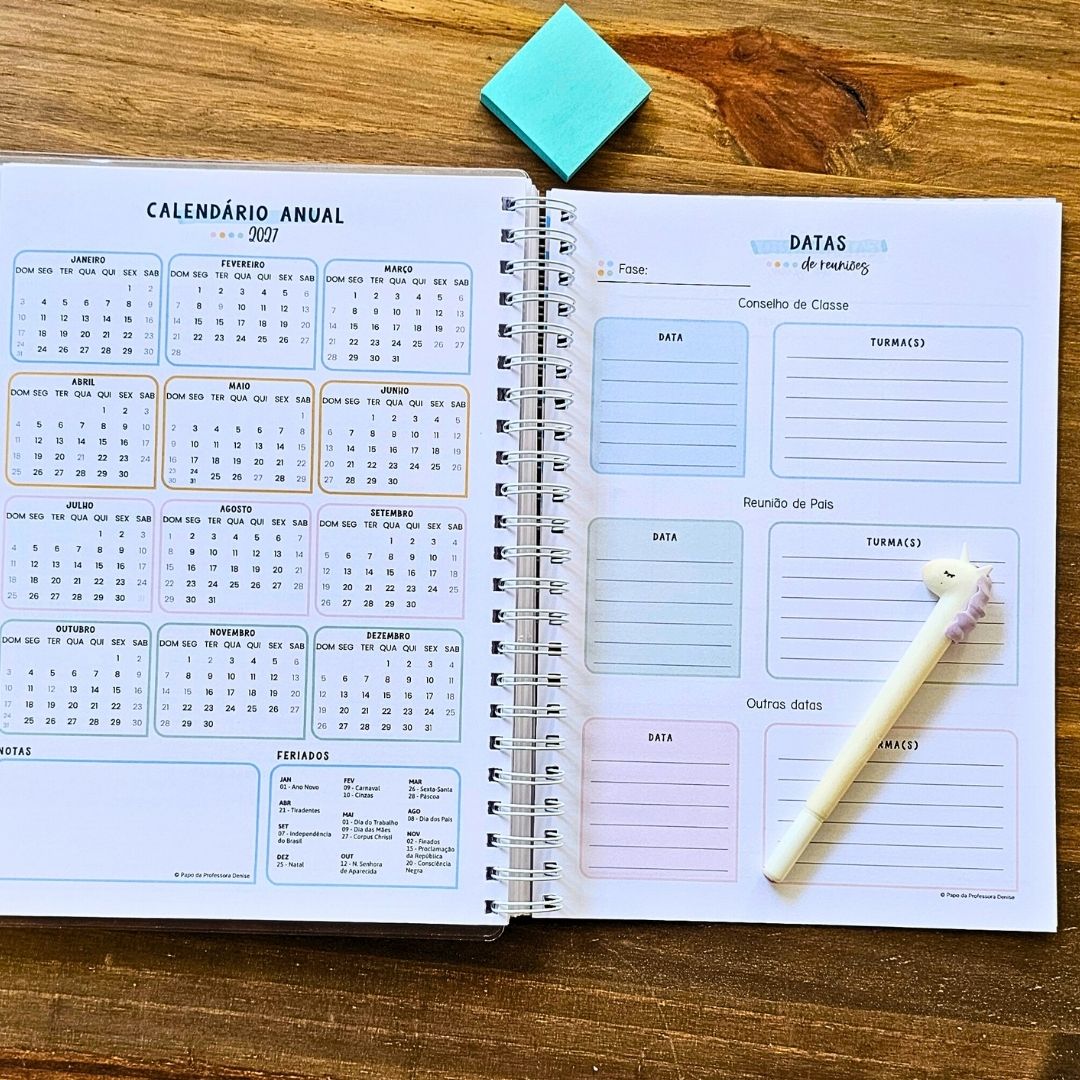 Tem novas páginas de gestão, páginas editáveis em PDF, mais planilhas, organização repensada e um sistema completo que integra rotina, registros e planejamento de aulas.